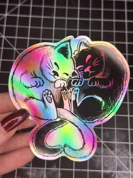 Love Cats Sticker Waterproof Vinyl Sticker Holographic variation